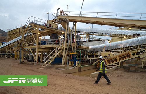碎石生產(chǎn)線主要由振動給料機、顎式破碎機、反擊式破碎機、振動篩、膠帶輸送機、集中電控等設(shè)備組成。為滿足客戶不同的加工需要,可配備圓錐式破碎機、除塵 設(shè)備等。大塊石料經(jīng)料倉由振動給料機均勻地送進鄂式破碎機進行粗碎,粗碎后的石料由膠帶輸送機送到反擊式破碎機進行進一步破碎;細碎后的石料由膠帶輸送機 送進振動篩進行篩分,篩分出幾種不同規(guī)格的石子,滿足粒度要求的石子由成品膠帶輸送機送往成品料堆;不滿足粒度要求的石子由膠帶輸送機返料送到反擊式破碎 機進行再次破碎,形成閉路多次循環(huán)。成品粒度可按照用戶的需求進行組合和分級,為保護環(huán)境,可配備輔助的除塵設(shè)備。